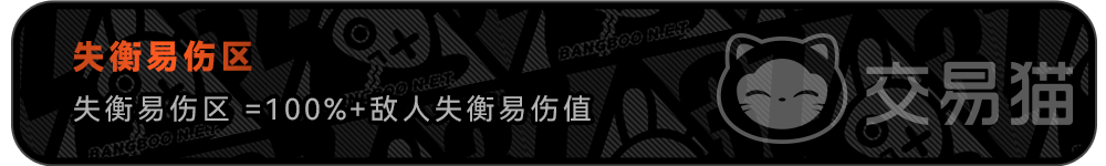 最后一个是失衡易伤区,这个乘区是会影响角色的平衡,其计算公式为失衡比例 =冲击力 *失衡倍率 *失衡提高区 *失衡抵抗区 /敌人失衡值上限 *100%,其中冲击力就是造成失衡的基本属性。