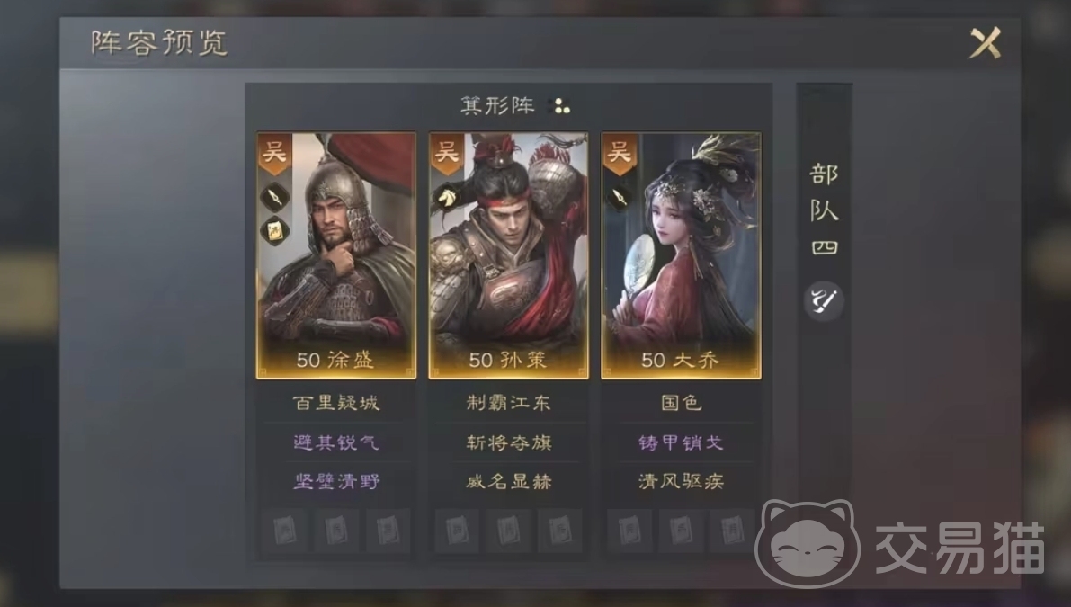 游戏对于阵容的选择也是很重要的,赵云加上刘备和曹操是一个很不错的推荐,核心输出在赵云身上,刘备和曹操带来队伍里血量值的加成。徐盛加上孙策和大乔也可以去尝试一下,这个阵容平民玩家也可以获取,徐盛和孙策作为其中的主要输出,大乔进行辅助带来相应的属性增强。