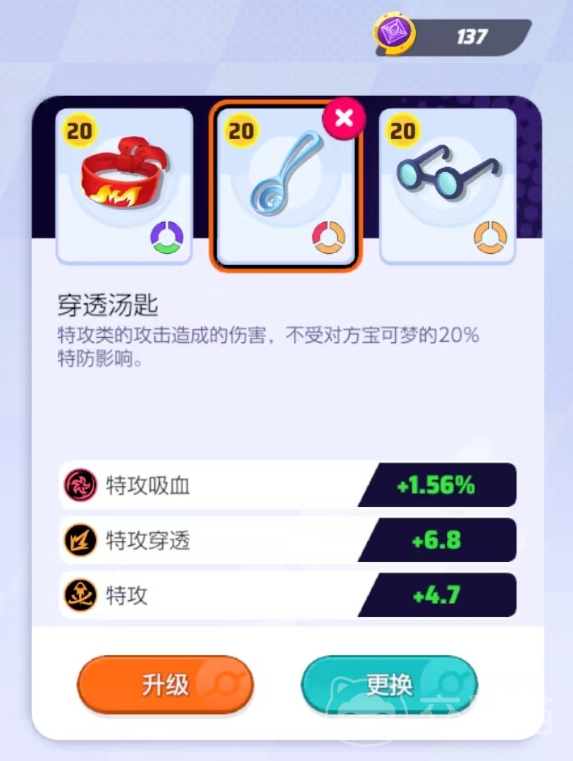 最后连打围巾,连续进行三次普通攻击,自身普攻速度就能获得提升,持续5秒钟,15%的提升以及5秒持续时间,可以保证超梦累积更多能量,这样有助于进行超进化,让整个循环变得更快。为了加强输出,也可以选择博视眼镜。如果感觉要提升一些生存能力,气势头带,是不错的选择,在体力较低时可以恢复自身生命值,有助于持续战斗。