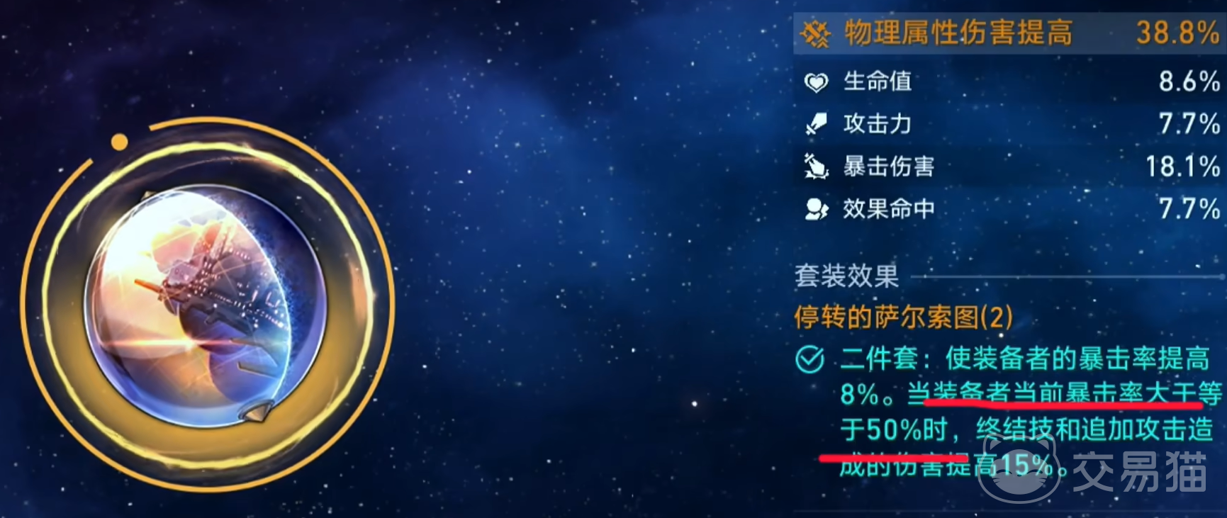 小编建议外圈遗器使用四件街头出身的拳王套装,内圈使用停转的萨尔索图,这一套遗器能够帮助银枝打出更高的输出,同时四件套的效果能够提高银枝的穿透属性,在对群输出的时候能够造成更高的伤害,其中躯干遗器的主词条小编建议携带暴击伤害,这样能够提高伤害上限。