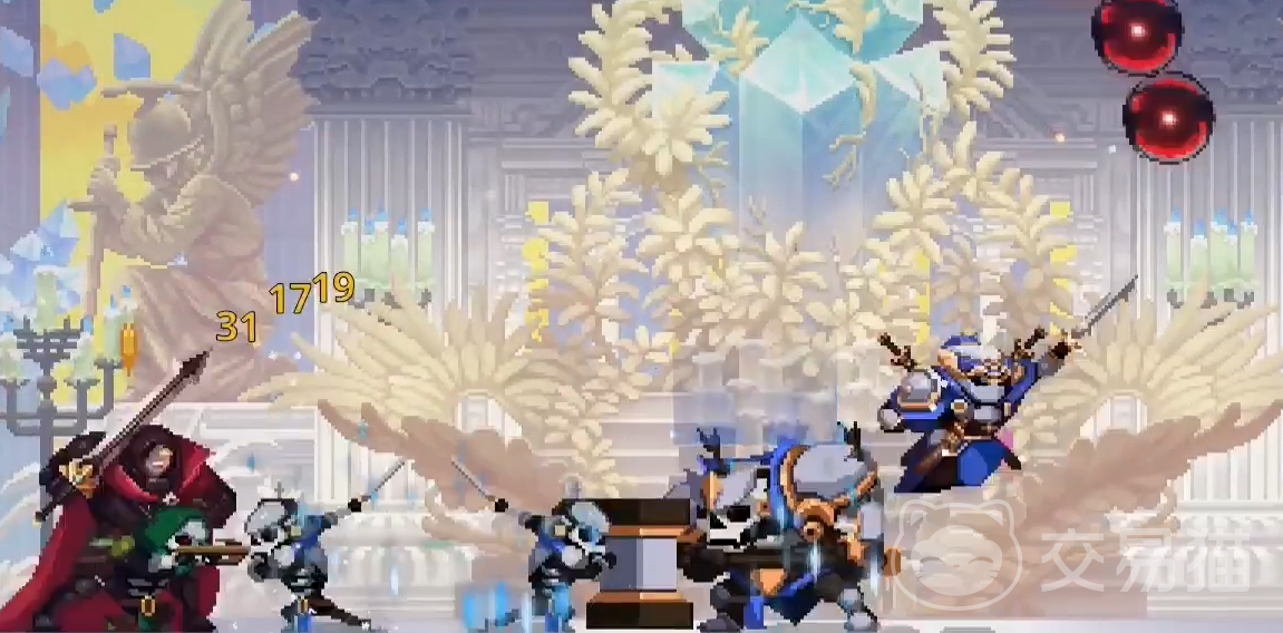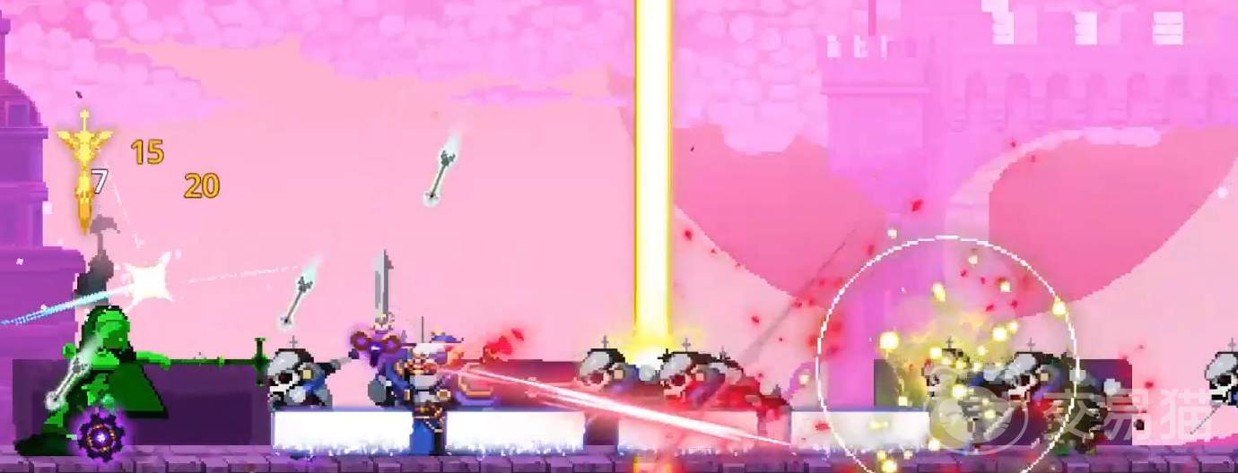 游戏里面这个流派的玩法也比较简单,玩家们在遇到敌人的时候首先先将骷髅骑士召唤出来,因为它血厚防高,可以帮我们承担伤害。之后我们可以召唤弩兵和剑士,这样初期的人海战术便已经形成,之后只需要不断的去进行召唤即可。