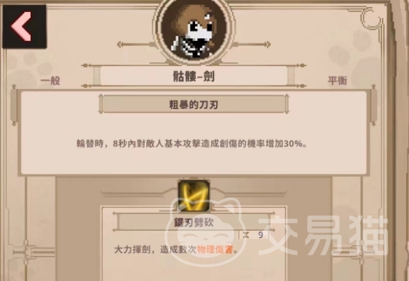 而冲刺到敌人脸上后,则可以让骷髅剑轮替商场,轮替上场后的八秒内使用普通攻击有更高概率让敌人陷入创伤,之后再衔接技能“锯刃劈砍”能够打出多段伤害,以此更快捷的击杀敌人。