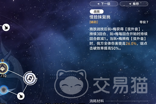 同时这个决策也可以让整体队伍的速度有所提升,使用天赋分型的螺旋之后甚至可以让对手受到自身60%的冰属性伤害,如果想要让自身的战斗能力更强,那就可以用慢捻抹复挑这个技能,让自身阵营的全体成员都能提升16%的伤害,在这种情况下,整体的弱点击破效率也能提高50%,甚至最高可以给队伍提供百分之百的增伤,可以考虑选择一些c位角色与之搭配,在这种情况下,阮梅会成为一个非常优秀的辅助角色。