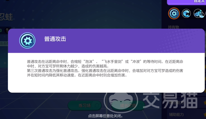 在游戏里属于一个主打攻击的宝可梦,整体的攻击能力是非常强的,而且攻击速度也还可以,角色在游戏里的一技能名为泡沫,使用之后角色会直接吹出泡泡攻击对手,一旦命中对手,那么对方的移动速度就会下降,等到玩家的等级提升之后,一技能也有两种不同的作战方式可以选择,首先是直接向左升级,这时候角色会用自己的粘液做成短剑扔向对方,命中之后速度就会下降,同时玩家的速度会上升。