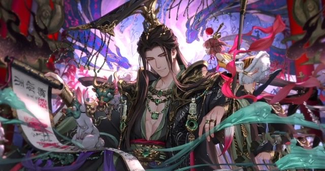 夏鸣星的典藏卡面,灵感来源于西游记中的六耳猕猴。古典的绿红配色,搭配精美的发饰和头冠,将夏鸣星塑造成一个充满神秘气息的“西游风”角色。仿佛他正从古老的画卷中走出,带着一股难以言喻的魅力,吸引着你的目光。
