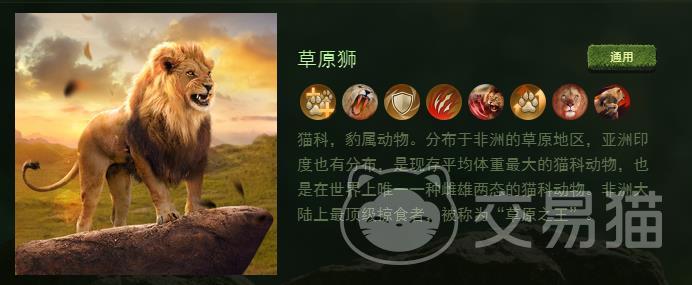 作为游戏当中比较常见的野兽技能共。包括两种不同的类别,比如战斗技能为聚力撕咬。还有指挥技能为群落领袖。作为出色的猫科动物,以群居为主,会栖息在开阔的草原以及半荒漠地带。