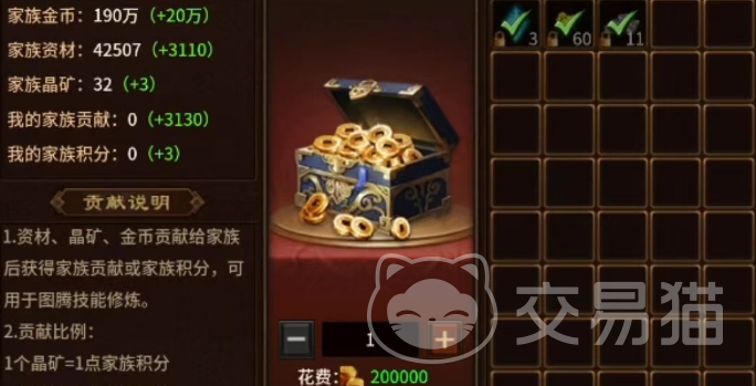 游戏中的诸多活动,都是以家族展开的。如果没有加入家族,那么这些精彩纷呈的活动都将与玩家无缘,加入家族不仅意味着能参与更多活动,还代表着大家需要肩负起一定的责任。每日的捐献就是其中之一,这不仅是对家族的贡献,更是对自我成长的投资。