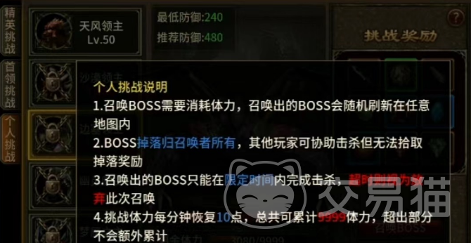 对于那些不喜欢激烈竞争的玩家来说,个人挑战是一个理想的选择。个人挑战允许玩家根据自己的实际情况召唤boss进行挑战,无需与其他玩家争抢。虽然个人挑战的奖励可能相对较低,并且有一定的挑战次数限制,但它的安全性和便捷性使其成为前期获取装备的有效途径。