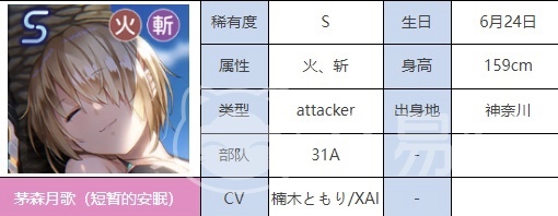 想要了解所有角色的强度,并不是一件容易的事情,特别是对于新手玩家来说,选择角色来进行对抗,是非常重要的,游戏中还将角色分成了不同的不对,后期还要进行组队来战斗,首先给大家介绍的就是火队的主C茅森月歌,它是一款强度非常高的角色,并且使用的范围非常广,特别适合新手玩家,应对各种战斗场景,对于清理小怪和boss都非常优秀他的初始技能十字斩,可以消耗六S P值来对敌人582的基础伤害,利用两把剑来对单体的敌人伤害,二技能需要大家在14级之后才能解锁,可以恢复前卫的915治疗量。