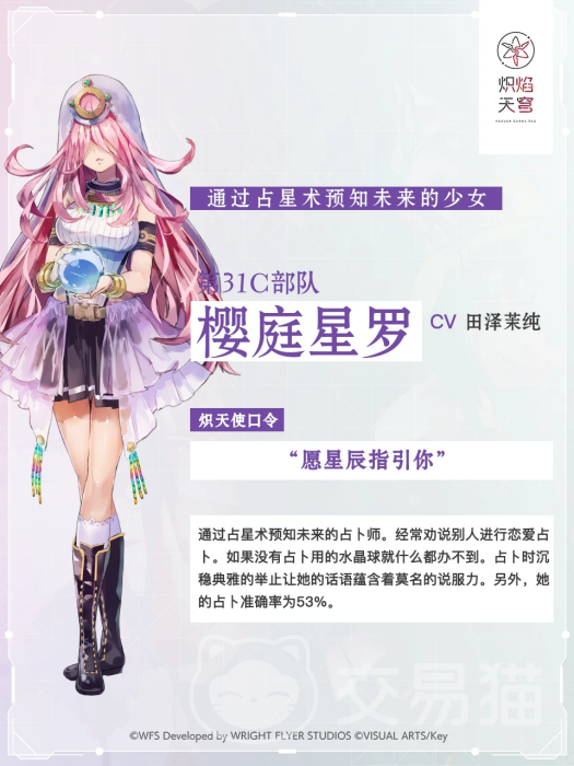 三技能梦幻泡影需要大家的等级达到38之后才可以解锁,在空中飞行飞行对单个的敌人连续攻击九次,产生1602的基础伤害,可以搭配火戒指、火手环、属性堆力等装备,而樱庭星罗也是一个不错的选择,作为一个占卜师,她的外形是非常吸引眼球的,主要是打属性的攻击,在战斗过程中以主要输出为主,他的基础伤害可以来恢复能量,而被动技能是增加最高,可以增加15%的攻击属性。
