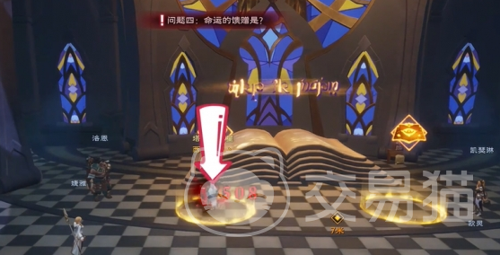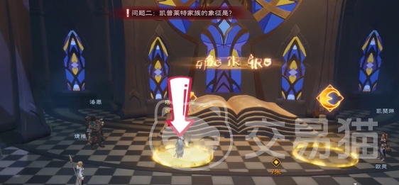 首先第一个问题是关于法布尔的心爱之物。大家只要往右边那个圈里一站,就算是回答正确了。这个就是说他的宝贝是某个跟右边相关的东西,具体是啥,游戏里会告诉玩家。然后第二个问题是问开普莱特家族那个特别有名的象征是什么。这个问题玩家走进左边的圈就对了。简单来说,就是他们家的标志跟左边那个圈有关系,具体是啥标志,游戏里自然会揭晓。