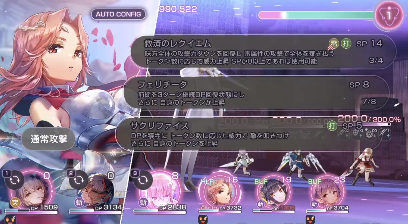 她的二技能名为饱和回复,是她的大招。这是一个范围辅助技能,可以给多个队友修复她们的护盾。虽然技能效果和一技能相似,但这个技能回复的数值特别多,而且耗费低,只要8能量。这个角色在培养成型以后,还能获得特殊能力打之威吓。这个能力是自动释放的,可以削减敌人的防御能力。