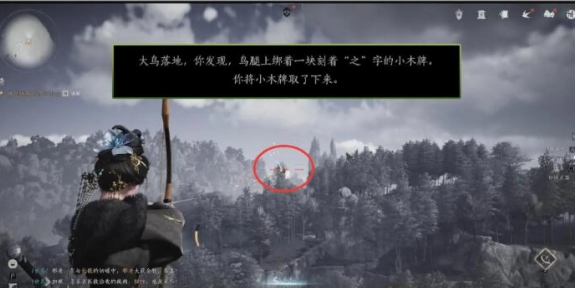 接着可以将飞得最高的鸟射下来,鸟的位置很好寻找,根据图片就能找到,只要将其射飞就可以得到之字小木牌,任务到了这里基本上已经顺利的通过,接下来的操作就很简单,需要爬上瞭望塔。