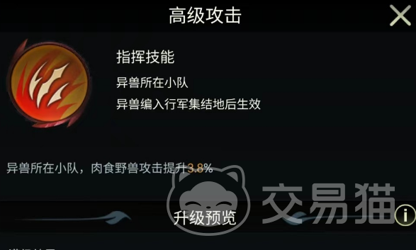 在带领兵种方面,猞猁最擅长的就是与肉食野兽类兵种协同作战。由于猞猁本身就是一种肉食性野兽,因此与同类兵种配合默契,能够发挥出最佳状态。在战场上,猞猁可以带领肉食野兽类兵种进行快速突击,利用其敏锐的感知能力捕捉到敌人的弱点,并发动迅猛的攻击。这种战术组合不仅提高了整体的攻击力,还使得敌人难以捉摸猞猁队伍的动向,从而在战斗中占据优势。