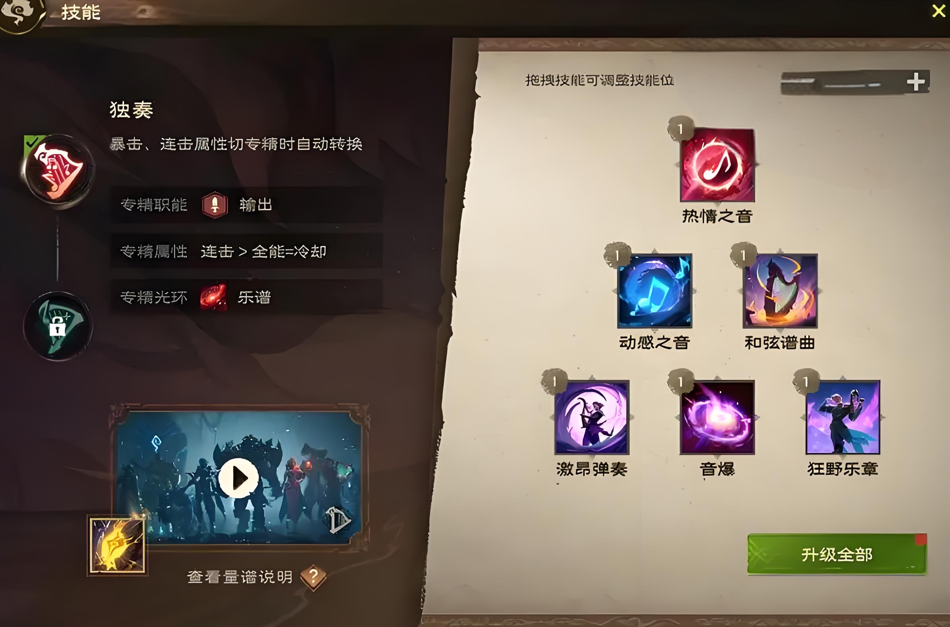 优雅之音天赋触发后,吟游诗人在释放曲谱技能会被简化,输出的速度大幅度提升。