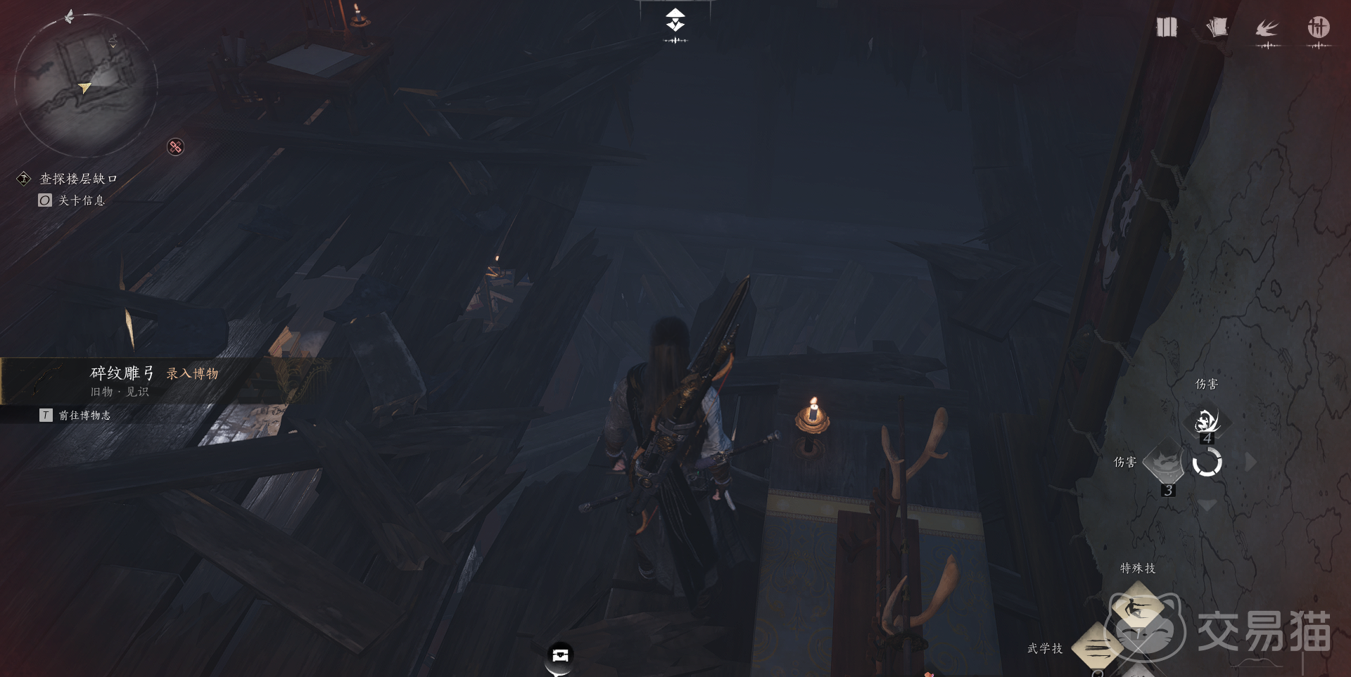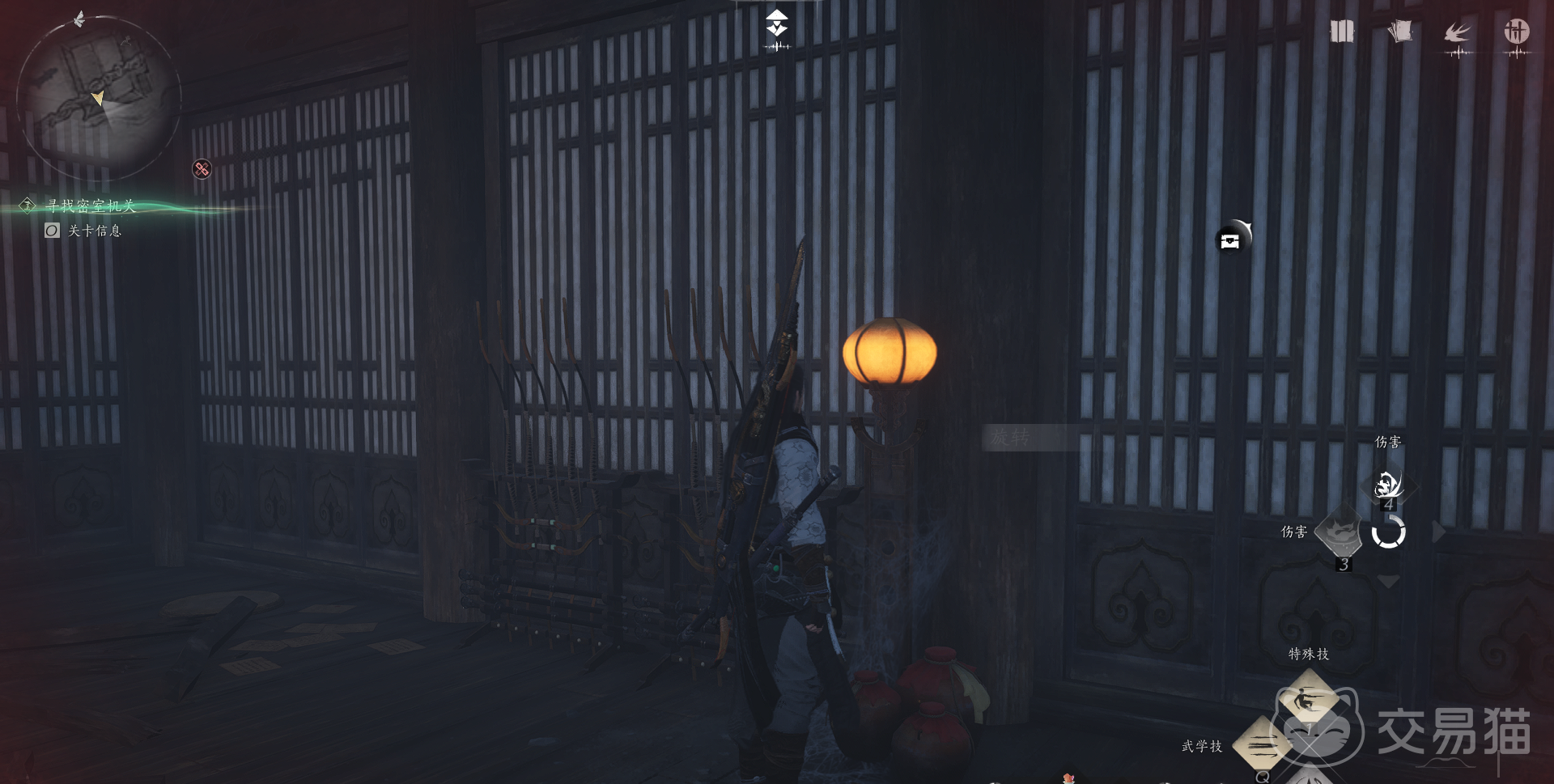 想要完成这个任务需要大家进入到春秋别馆的二楼,来领取相关的任务,之后利用地图中缺口的位置,利用技能将这个洞口给打破,成功进入到房间中去,接着利用黄色的灯的道具。