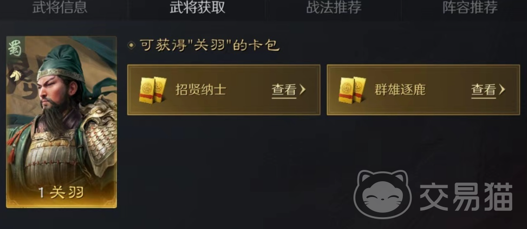 关羽在游戏中玩家抽取的概率太低,小编还是推荐购买的方法。不过这游戏中玩家如果不想玩蜀国队伍就不要进行抽取了哦!三国谋定天下关羽多少送今天就到这里,参考以上的方法相信小伙伴们能够在游戏中获取到自己想要的角色!