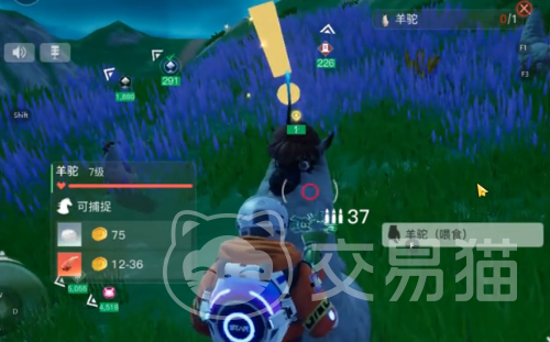 遇到羊驼之后,通过攻击的方式减少动物的血量,这样在捕捉时更加方便,当血量减少时直接拿出牙提前准备好的禾麦进行饲喂,这样就能够成功捕捉了。