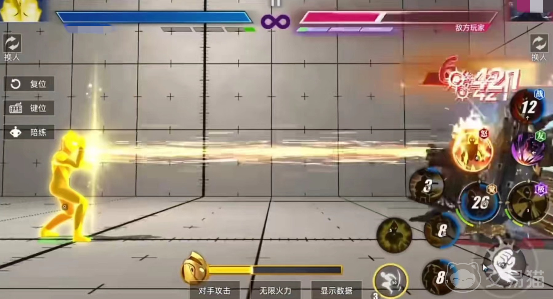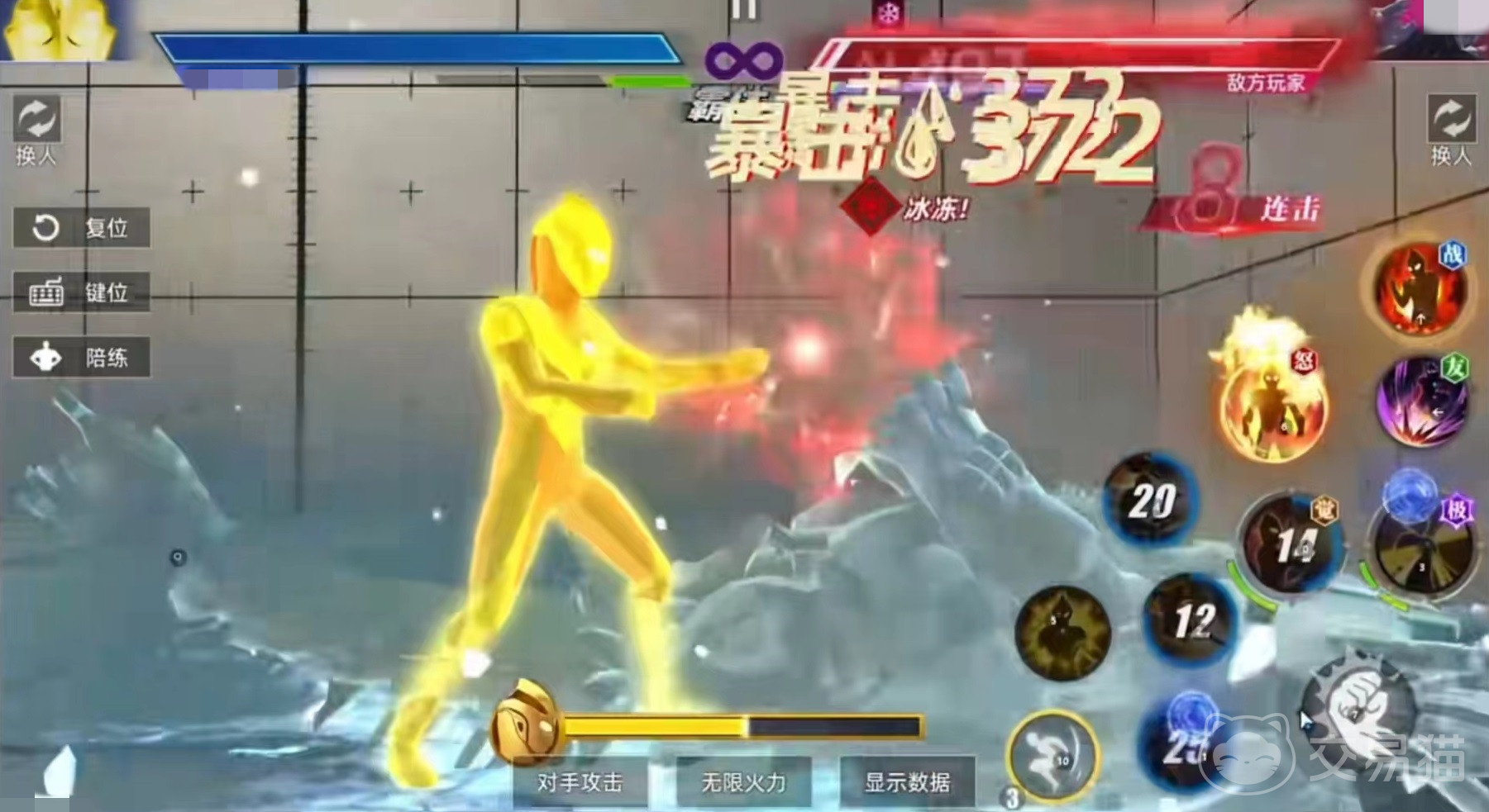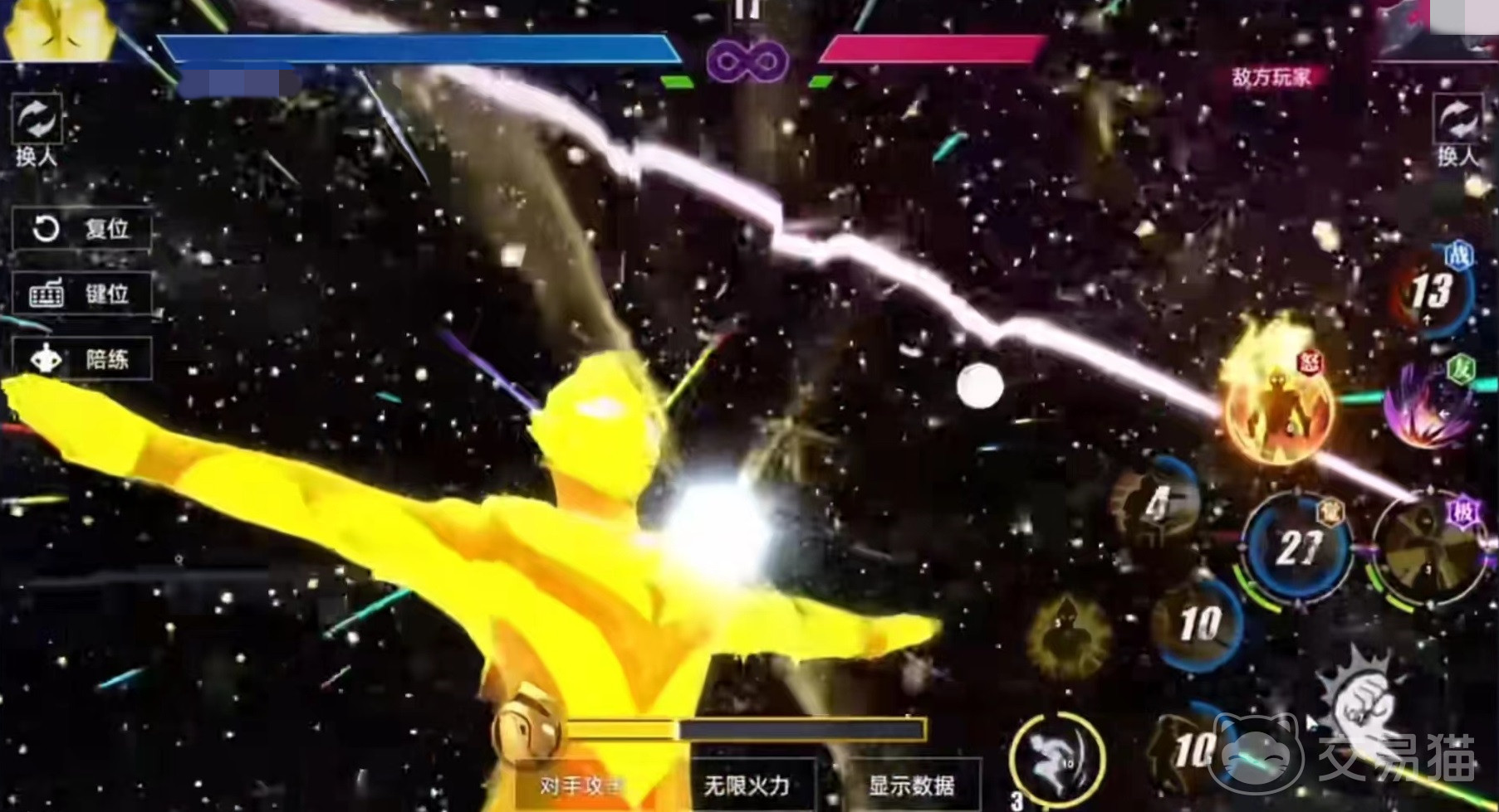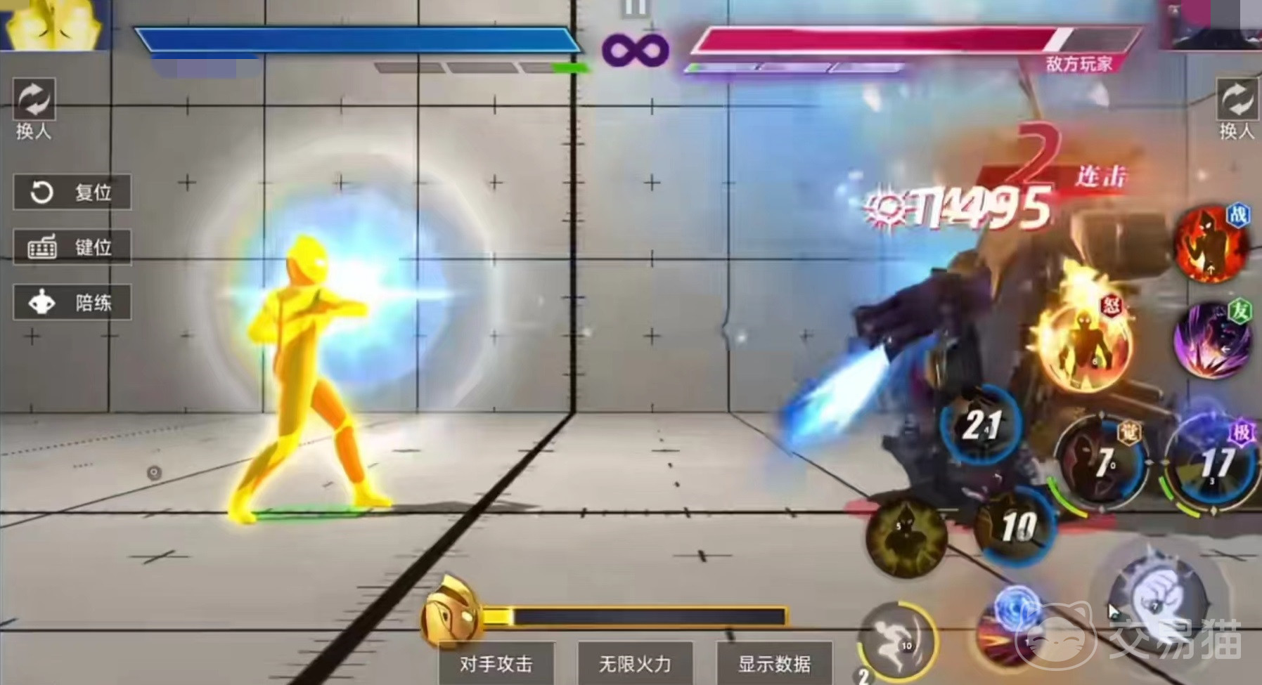 自身二技能可以直接跃起并附带短暂的无敌效果,激战技计时器闪光,中对方后会造成眩晕。在战斗中,大家要时刻注意屏幕下方能量条,平时处于自动缓慢增长的状态,通过长按普攻键的方式,就可以快速进行能量积攒。当能量达到满值时,激活第2个子技能,点击时候后进入到悬浮状态,漂浮在半空中,该状态可以持续20秒左右。释放时可以将技能刷新,并且大幅度降低冷却时间。也会改变移动和部分攻击动作姿态。二技能改为闪耀毁灭,觉醒技改为悬浮释放,可以用摇杆来进行位移。