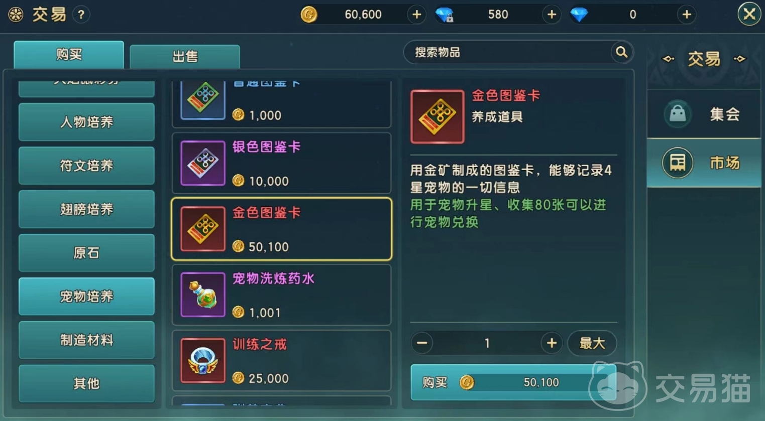 目前游戏内获取金银卡的方法一共有三种,第一种就是在交易市场获取,交易市场也是玩家与玩家之间交易的渠道,我们可以在这里面搜索不同品质的金银卡,然后使用货币进行交易。在这里玩家也可以自由出售自己现有的物品,是快速变现的一种来源。