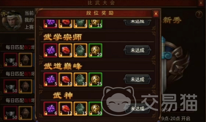 比武大会其实是一个段位制的比赛。刚开始的时候,大家都是“武学新秀”,通过不断的比赛,玩家可以逐渐提升自己的段位,从“武学高手”到“武学强者”,再到“武学大师”,最后达到最高的“武神”段位。每当玩家提升一个段位,都会有一些额外的奖励送给玩家。在比武大会上,玩家们所面对的对手一般都是随机匹配的,然后会被送到同一个比武擂台上进行战斗。