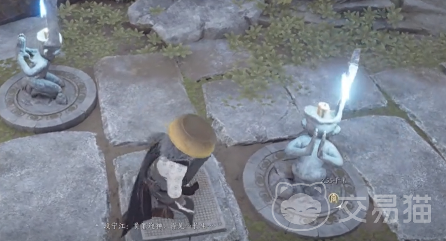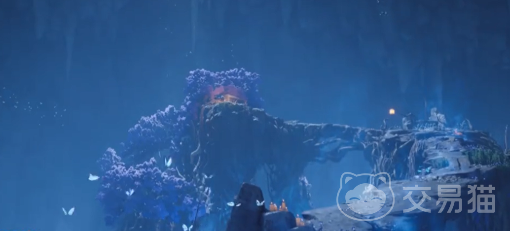 之后来到萤渊底部,发现荧光聚集之处有一副金色石棺。向着金棺走去,三头蓝色鹿影逃向远方,路上也出现了一层淡蓝色的结界。解决问题的关键就是要安抚三头鹿。三头鹿的位置在水岸,藤腹以及鼓上,鼓上的鹿需要点燃对面的三盏石灯。需要注意的是,开启宝箱后获得鼓槌敲鼓才能找到鹿影。