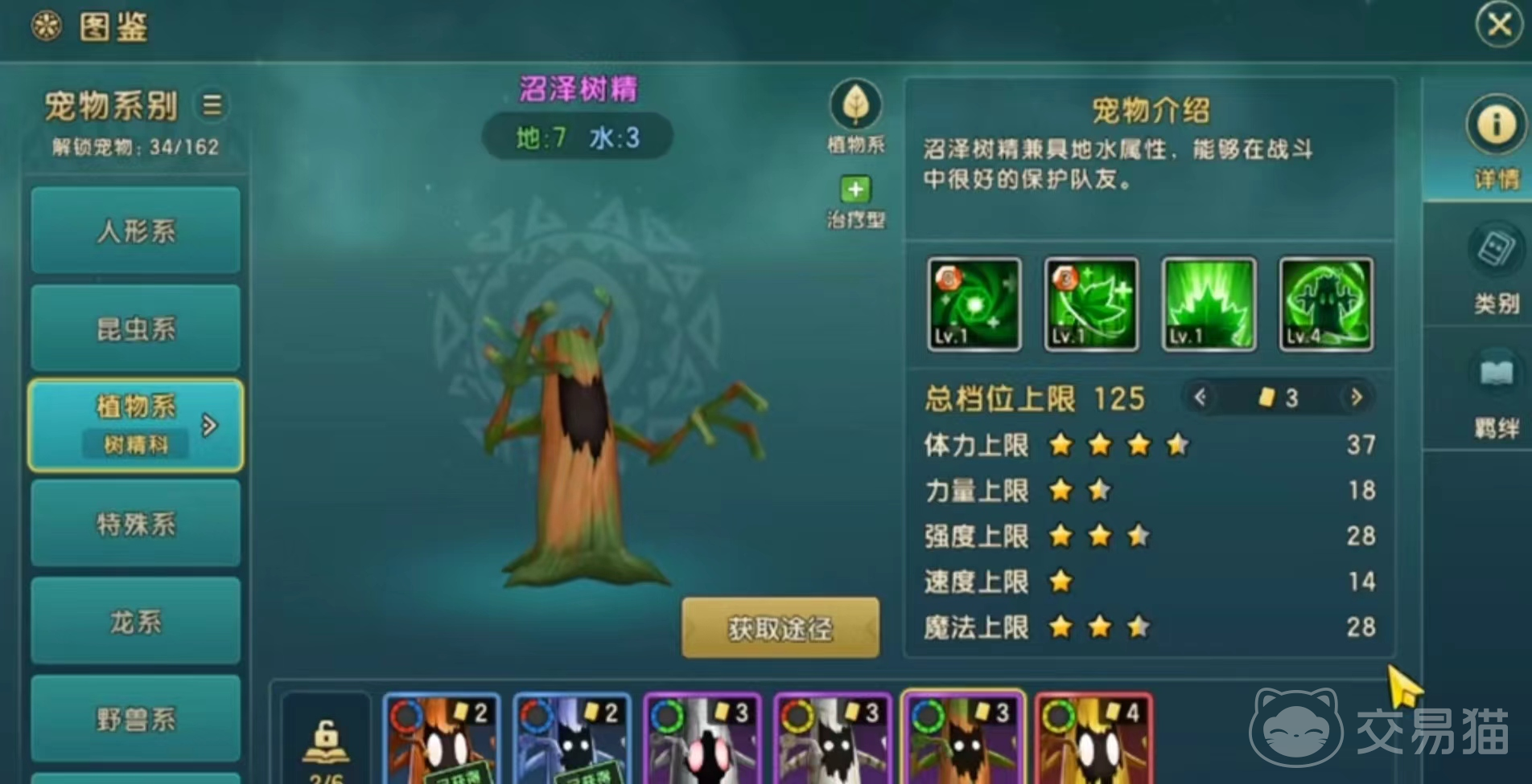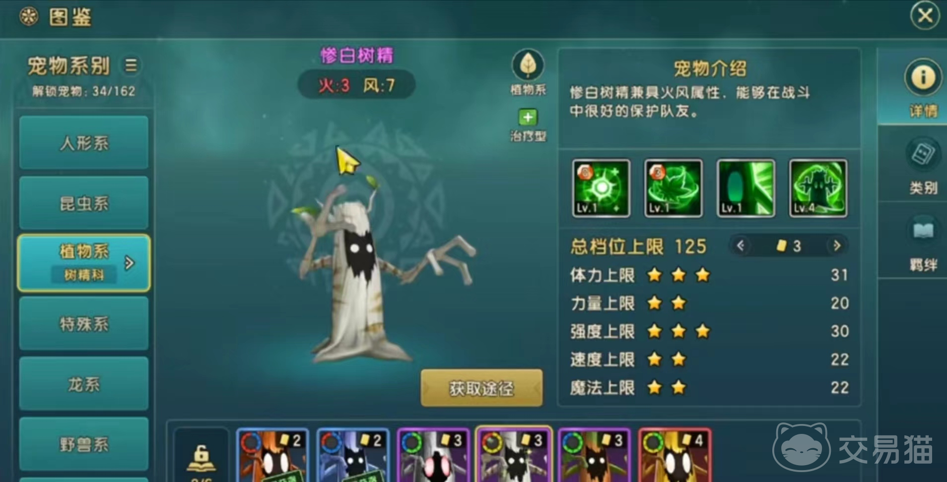 如果需要回复效果好一点的,就用沼泽树精,不过这个树精的获取难度就有点高了,需要在引魔台或者在银卡里面兑换,普通玩家获取可能就会有点困难,如果沼泽和黄金树精获取都比较困难,可以用惨白树精,惨白树精的技能和黄金树精是完全一样的,但是它的体力上限低的更多,只有31,升到四星也只有32,但是黄金树精的被动却是援护技能。