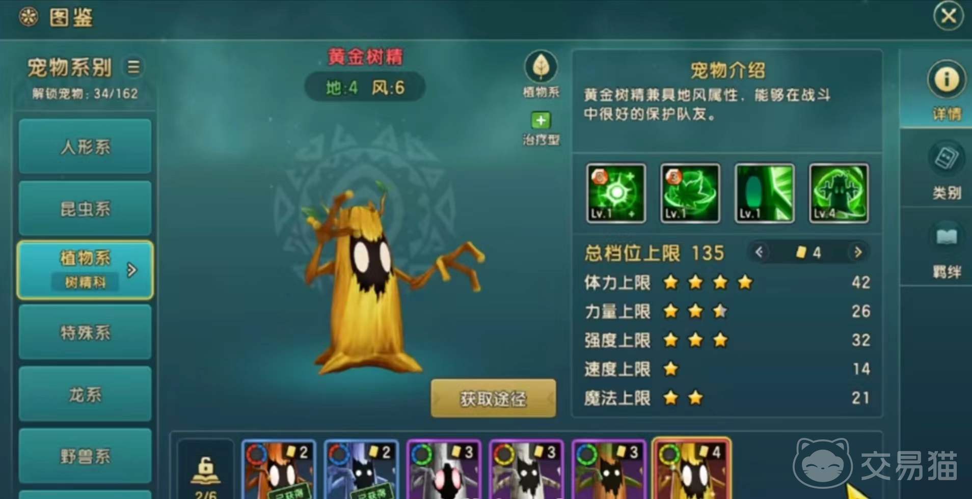 首先分享的就是惨白树精和黄金树精,它一技能的作用是援护,可以用来保护队友,而且在恢复自身血量和队友的同时,还能起援护作用,所以在培养树精的时候最好是要加点敏捷,在配速的时候要让它比大部分宠物速度都要快一点,这样才能起到快速援护的作用,但是援护作用只持续到本回合结束,等到下一回合行动前也就没有了,如果树精的敏捷度能够达到550左右是最好的。