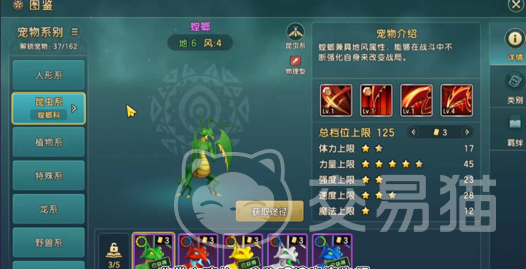 这款游戏为了让大家有更好更多的选择所以宠物的种类也是非常多样的,有同时兼具水火属性,个子很大的树精,可爱的水系宠物水蓝鼠,生活在特定区域的黄金螃蟹,还有非常经典拥有非常高攻击力的螳螂,能造成超高魔法攻击的丘比特等等。满足了不同的战斗场景和战略需求,带给玩家更丰富多样的游戏体验,收集宠物也是一大乐趣。