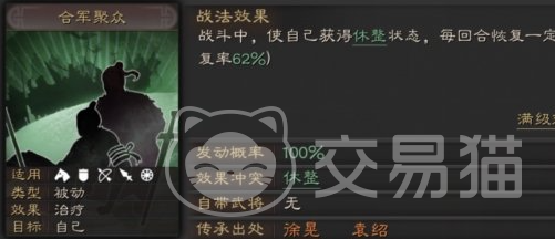 在第1个回合能够给敌方两个成员全部都造成兵刃伤害,在持续两个回合中都可降低统率属性,并且还可以让敌方进入灼烧状态,如果玩家正好是主将,马上就可以在三个回合内提升我方的统率属性。