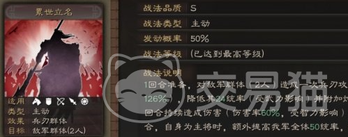 文武双全:每一次所造成的谋略伤害都可以在原先的基础上加上智力属性。冰刃伤害会在原先的基础上增加武力属性,甚至还能有机会叠加5次。除了这些战法之外,玩家还可以选择“天降火雨”、“破城催坚”