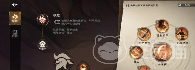 “怒刃”这个技能,听名字就知道很霸气。这个得攒够70点怒火才能用,一释放出来,那就是两把狂暴的刀刃狠狠地砍向敌人。还有个“强制性御甲”,这个技能就是先破敌人的防然后再猛攻,让敌人在接下来的8秒内受到的伤害都增加10%。还有个“十字斩”就是快速地劈砍敌人两次,每次都能造成不小的伤害。用这个技能还能攒点怒火,为后面的大招做准备。最后那个“无尽之怒”,这可是狂战士的大招,一放出来那怒火就源源不断地涌上来,接下来的12秒内,所有技能都变得更猛了。