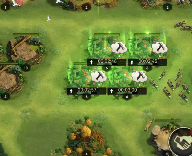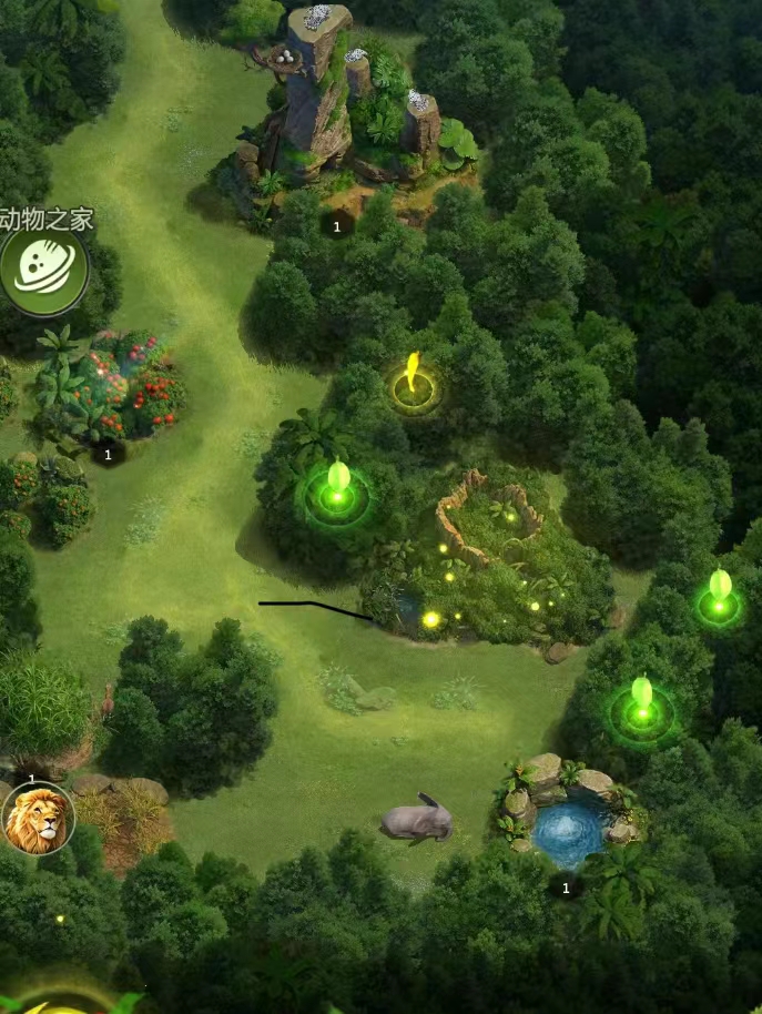野兽的栖息领地布局不可或缺的一部分,建设合理的栖息地为野兽们提供生活空间,才能保证后续的一切生产活动的进行,同时建立栖息地能增加野兽们的数量,从而加速领地建设进程。所以在领地布局过程中要栖息地规划出一大片范围以供动物生存。