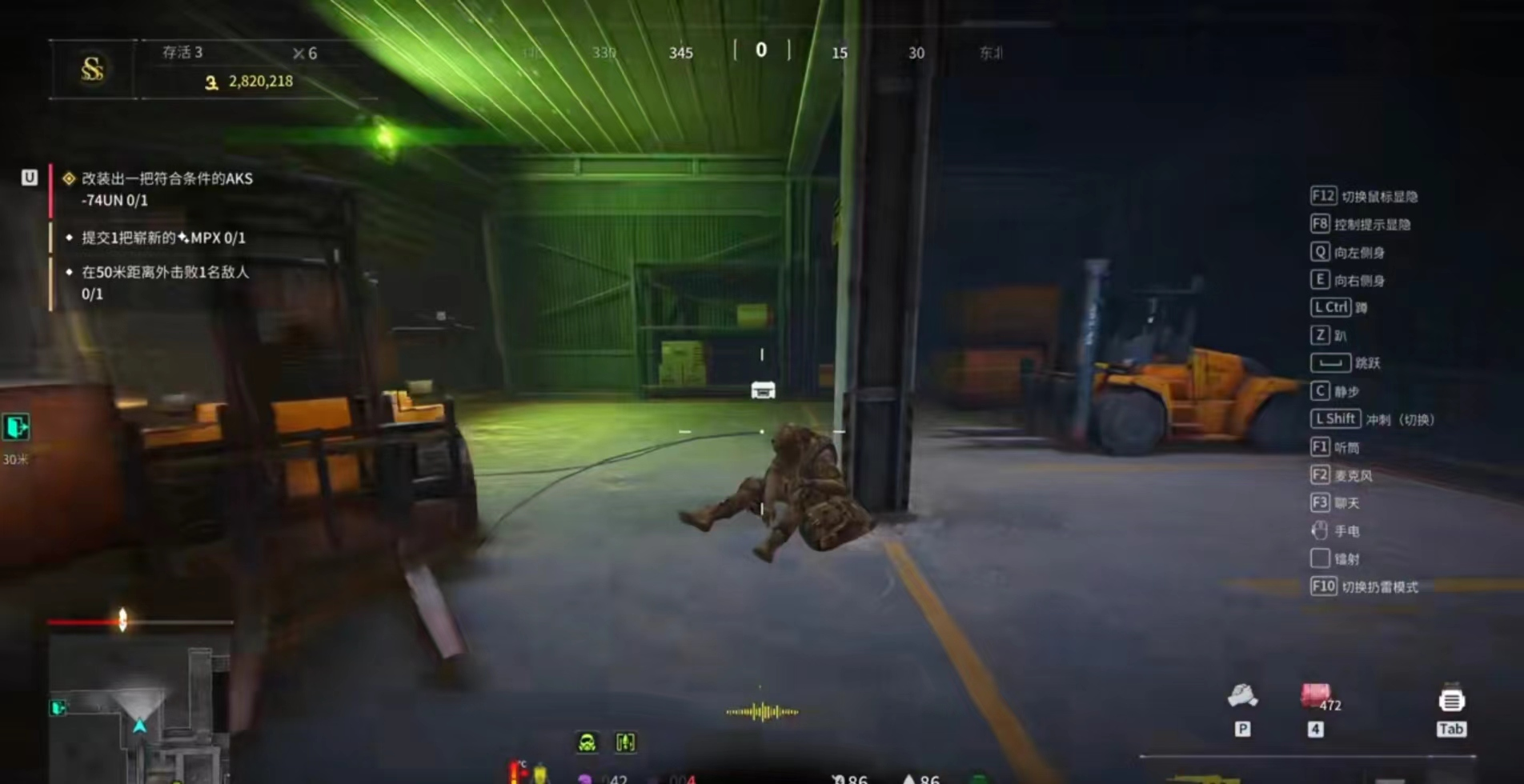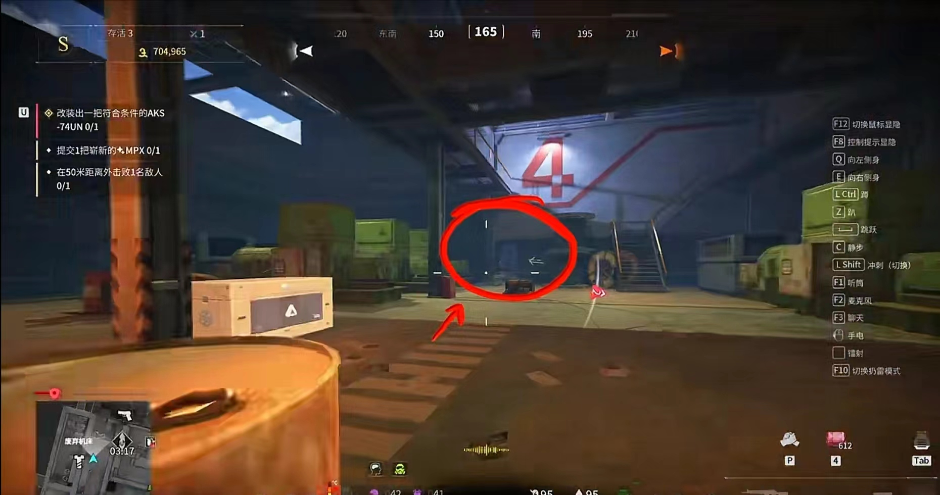 开局先往右手边走,在右边的一般会有四个点位刷新金币,如果没有可以直接上二楼,在前期如果大家遇到医疗箱都可以顺手开一下的,会给一些前期需要的医疗物品,在中心的油罐上可能会刷电钻和金币,前期没有投掷物的可以捡一下,在二楼如果碰到摇摇机的话一定要开,会有很大概率会掉小金或者大金。