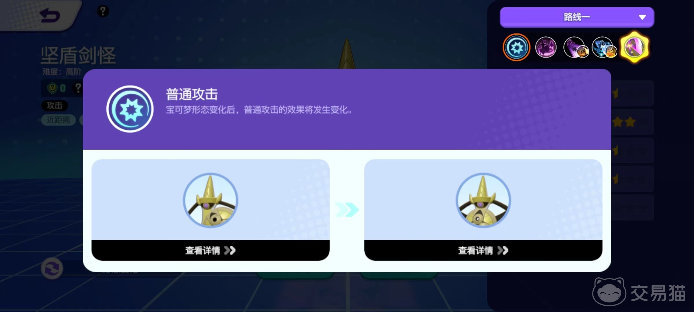 在宝可梦大集结中有一些宠物非常特殊,他们具有形态变换能力,这一类型往往较难上手,坚盾剑怪就属于其中之一,为了方便大家上手,今天小编带来的是宝可梦大集结坚盾剑怪招式介绍。虽然简单的介绍并不能直接熟练使用,但可以给大家打好基础,接下来只需要多经历战斗就可以了。