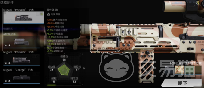 首先咱们得选个好枪管,203mm的枪管挺不错的,负面效果也不多,挺适合咱们这把枪的。护木的话,小编个人推荐intruder护木,跟乔治护木比起来,它更能减少后坐力,还能加点儿耐力,跟203mm枪管也挺配的。说到前握把,SVG是个不错的选择。它不仅能加快移动速度,弥补其他配件可能带来的减速效果,还能让玩家在地图上跑得更快,找物资也更方便。