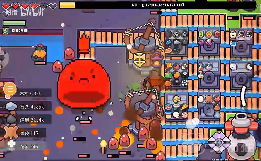接下来就是骷髅王,这个boss的本体其实还是比较弱的,主要攻击手段是近战,玩家贴在boss释放远程魔法就可以了,boss会经常释放骷髅小兵,这些小兵的移速很快,会让玩家的移动速度变慢,这时候最好的应对方式就更换城可以散射的攻击或者激光炮,这样就能同时打好几个目标,这样既能持续消耗boss,还能保住自己的血线健康。