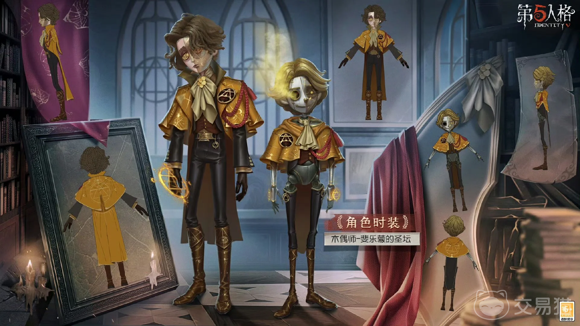 其次就是愚人金和木偶师的奇珍时装,其中愚人金的奇珍时装还是比较华贵的,看起来就像吸血鬼伯爵一样,整体都是黑色系的时装搭配红色的内衬颜色,而木偶诗则是暖色调的黄色系为主,有一个黄色的斗篷加上黑色的内搭。