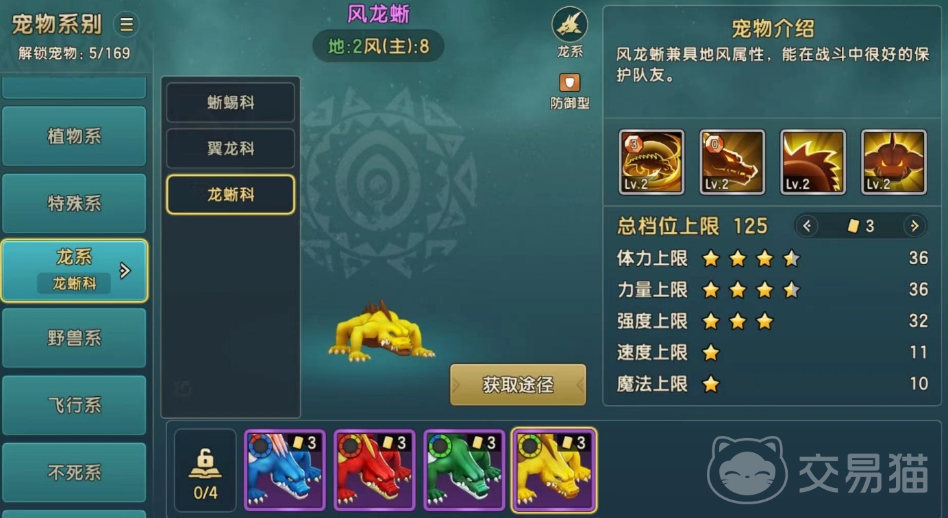 龙蜥科:水龙蜥、火龙蜥、地龙蜥、风龙蜥,这4个宠物在实力方面实际上没有太大的差别,都是属于紫色品阶宠物,在战斗的时候能够很好的保护队友,唯一不同的就是他们的属性会有所差别,玩家们可根据自己培养的阵容类型进行搭配,他们可以站在前排帮助队友抵挡伤害,自身的防御效果很强,体力上限较高,不过伤害比较一般,玩家可以给其搭配强势输出角色进行战斗,也是可以互补的。