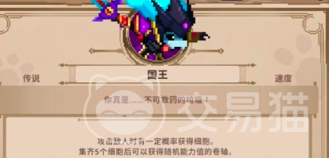 首先,小伙伴们需要熟悉的是国王的技能,在大家集齐五个细胞之后就可以获得能力卷轴,这里的卷轴是随机的,有一定的运气成分,如果是残酷卷轴的话,那么大家就可以提高20%的攻击力,如果是战略卷轴的话,则可以加快20%技能冷却的速度,生存卷轴则是减少自身5%的伤害。