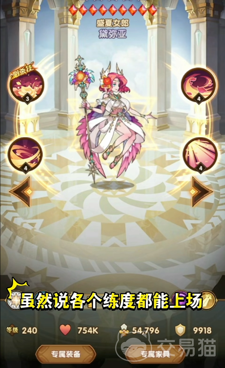 3、盛夏女郎:也是全就业的英雄,也是平民玩家必须要练的。需要注意的一点是,红品30专属她就可以上场,但是它的每一个练路都有加强,比如说309就不如30930,30930就不如30960,而且每个阶段提升的强度会很高。虽然说各个练度能上场,但是伤害差距还是比较大的。