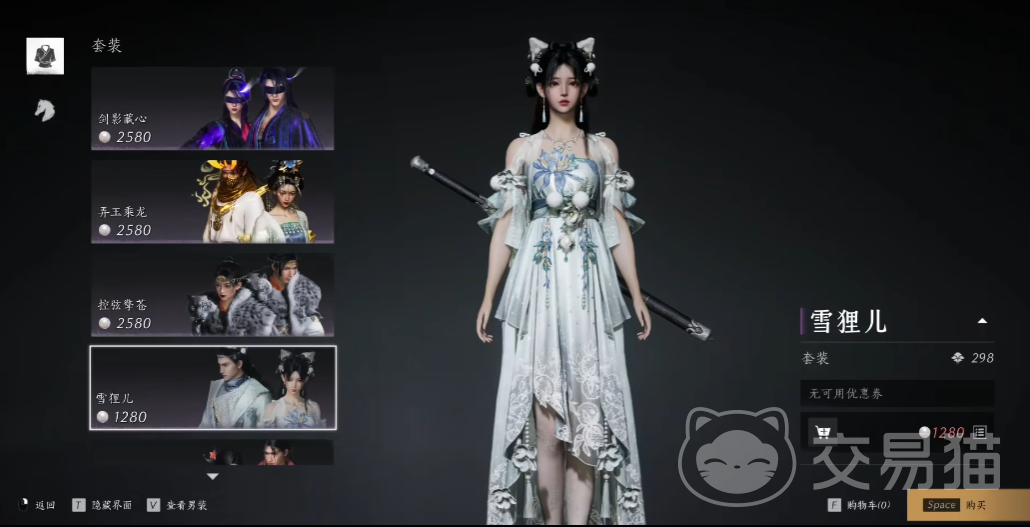 其次这套”雪狸儿“,相对来说就比较可爱了,不过应该很多女性玩家会很喜欢这一套,头上的两个狐狸耳朵也设计的正好,给人一种很灵动的感觉。