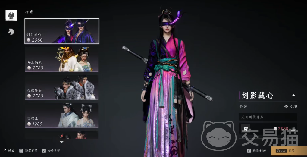接下来是这套”剑影藏心“,这一套看起来就是江湖侠客的那种风格,给人一种武功很好的感觉,而且很飒,有着一种高冷范,应该也有不少玩家会喜欢。