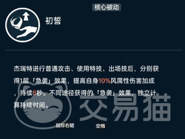 【杰瑞特】在游戏当中的定位是【毁灭】,这个定位十分的特殊,可以直接把杰瑞特当成一个高爆发而且伤害十分稳定的职业来进行查看了,不过毁灭职业有一个特殊的的核心被动技能。这个技能使得杰瑞特在释放普通攻击和使用特技的时候,都能获得一个【急袭】效果,这个效果利用有效的提高本体对于风属性伤害的加成,并且持续的时间也比较长!而且这个效果的持续时间是独立计算,那么意味着杰瑞特可以通过不同的方式叠加“急袭”效果,从而在战斗中长时间保持伤害加成状态。这使得杰瑞特在输出能力上有了显著的提升,无论是单体攻击还是群体攻击,都能造成可观的伤害。
