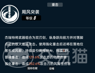 杰瑞特的奥义技能【风卷残云】能让杰瑞特将武器组合为双刃剑,召唤出巨型龙卷风对敌人造成大量风属性伤害。更为重要的是,在技能持续时间内,杰瑞特的元素增幅会得到一个显著的提升!这意味着他的技能伤害将得到极大的强化!能在战斗中起到扭转战局的作用,让杰瑞特在关键时刻展现出惊人的输出能力。当然了,除了核心被动技能和奥义技能外,杰瑞特的普攻和特技技能也同样出色。普攻技能风刃以连续四段攻击方式对敌人造成风属性伤害,而在武器处于【聚能】状态时,攻击伤害将得到进一步提升。特技技能掠影则让杰瑞特向前方甩出两道风轮攻击敌人,造成大量风属性伤害!