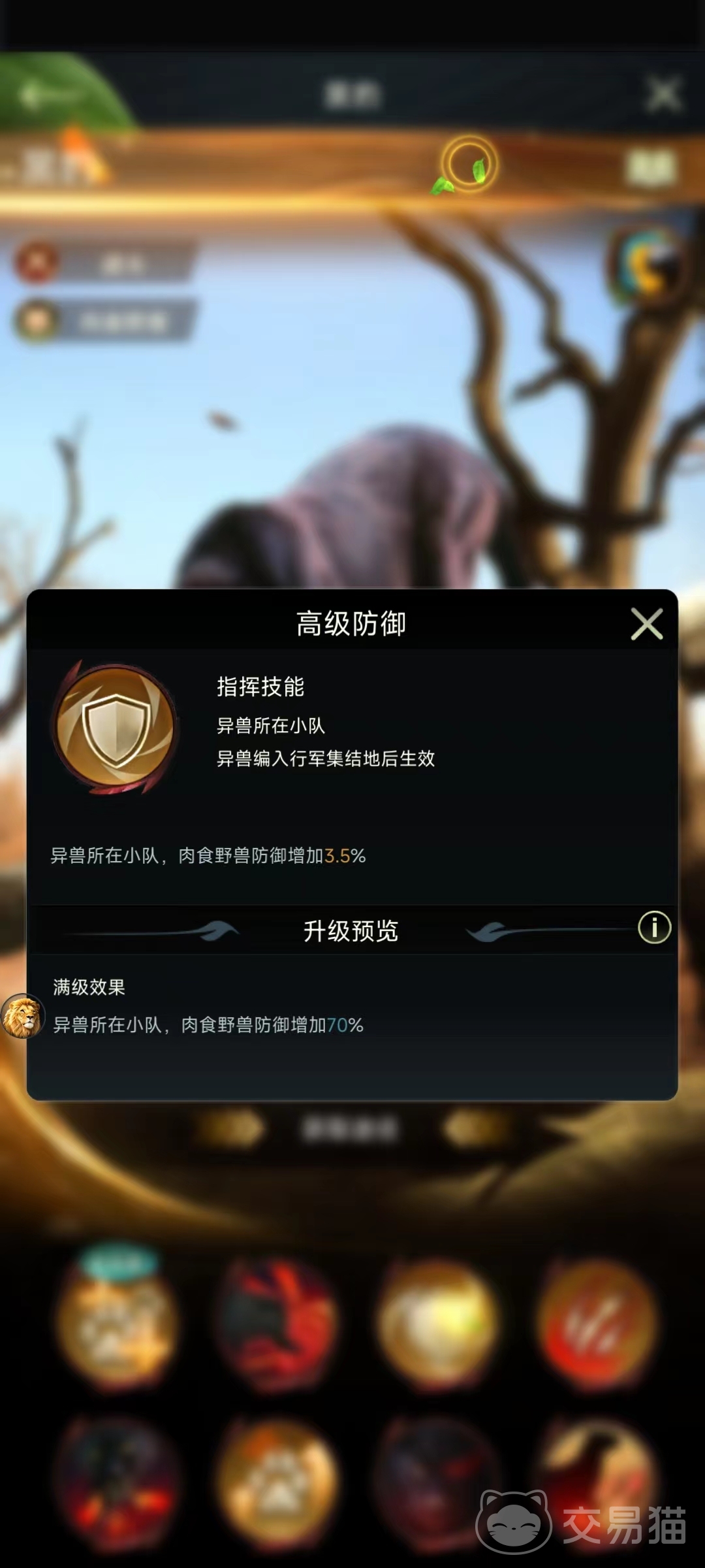 当然,作为食物链顶端的肉食野兽,游戏中的黑豹设定也具备较高的防御增幅,在行军集结地中,随着等级的提升,黑豹为肉食小队提供的的防御力也会随之提升,能够搭配不同肉食异兽提升整体的防御力,从而进行长期作战。