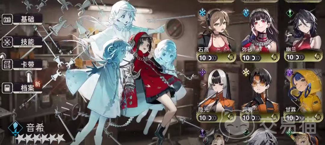 当前在游戏中出现的角色有,代表最强法术攻击的音希、最强近战攻击的龙井、最强综合能力的铁刀、最抢坦克杨戳,而其他的角色分别是副C首选莲心、启航、朝颜、以及忠元,还有综合能力比较强的麻雀、红袍、绿雪,最后是作为中流砥柱存在的角色小春、茜、星期六和文景,这些角色都是游戏主线剧情中出现过的重要角色,部分并未在游戏主线剧情中出现的角色也是可以通过游戏内的抽卡来获得的。