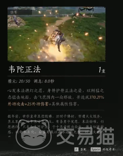 其次是“韦陀正法”这一内功,它比起”百鬼打穴手“来说,就没有对于boss的攻击限制了,并且在对敌方造成的伤害也会更多,这一内功是可以将范围内的敌人全部锤飞并造成伤害,姿势和特效都挺帅的哦。