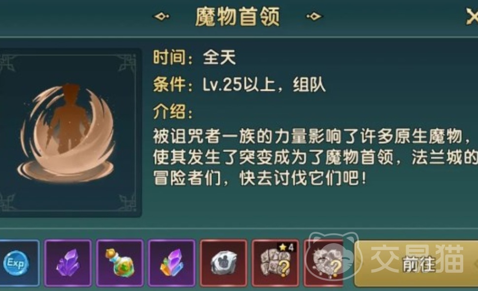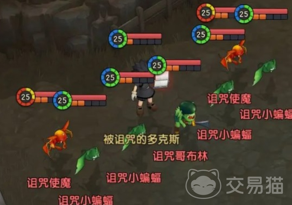 在升级的过程中,需要大家来挑战魔物的首领,只有在25级之后才可以开启这个升级的玩法,不同的星级难度也会不同,中间的位置是哥布林的首领,周围都是小蝙蝠,而后面就是大家需要打败的魔物,他拥有较强的全体控制能力,属于一个咒术师。