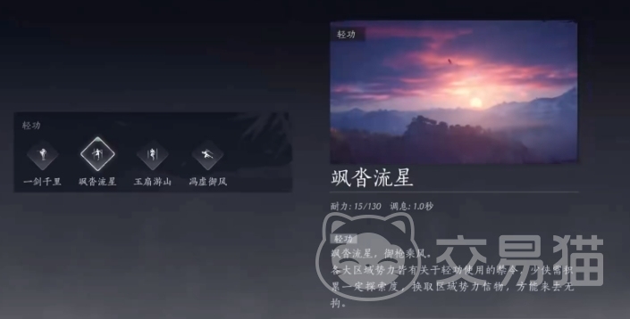 飒踏流星会让玩家先跃至空中,然后力量感十足地挥动手里的武器,整个人也随之冲出去,颇有种一往无前的气势。这个大轻功需要人们去完成暮云何物的任务,完成鱼翁的挑战后便能直接获取。